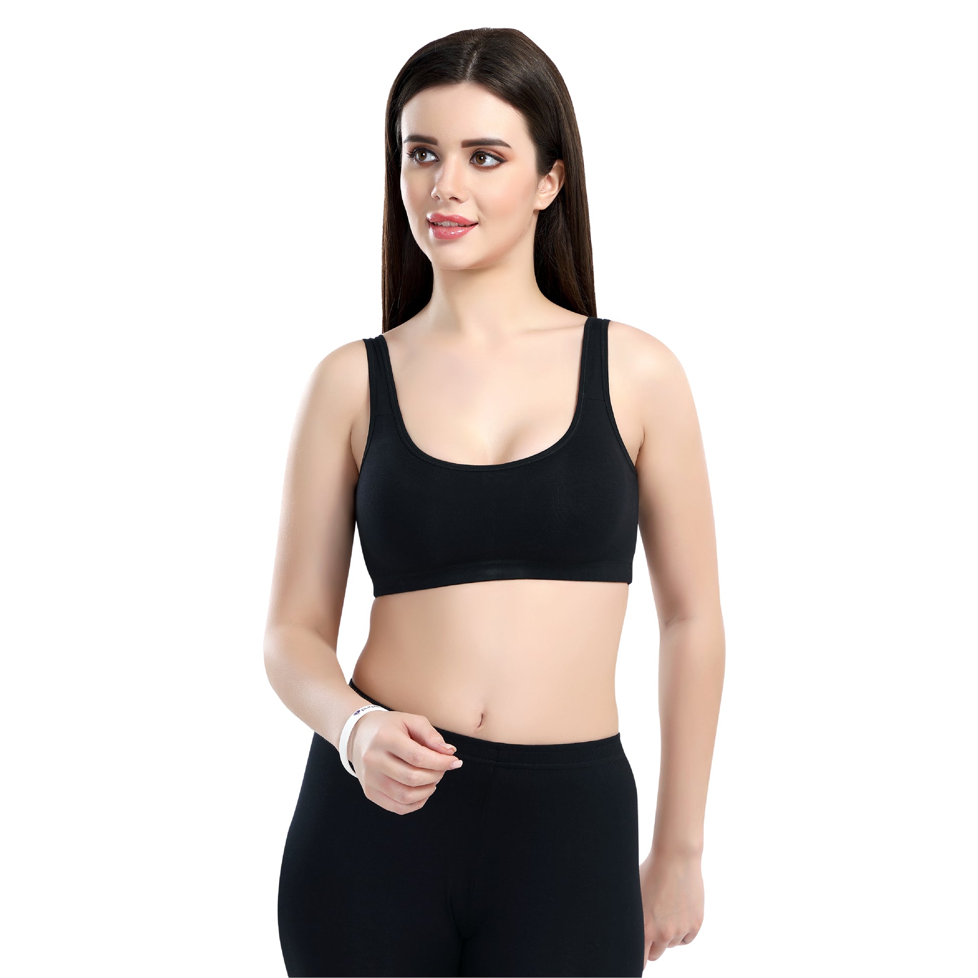 Introducing our sleek sports bra, featuring a flattering deep round neck and crafted from a blend of 97% cotton and 3% Lycra fabric. Designed to support and enhance your active lifestyle, this sports bra offers a comfortable yet secure fit, allowing you to move with ease during workouts. Its breathable cotton blend ensures optimal comfort, while the added stretch of Lycra provides flexibility and shape retention. Elevate your activewear collection with this essential piece that combines style, support, and performance for your most dynamic workouts.