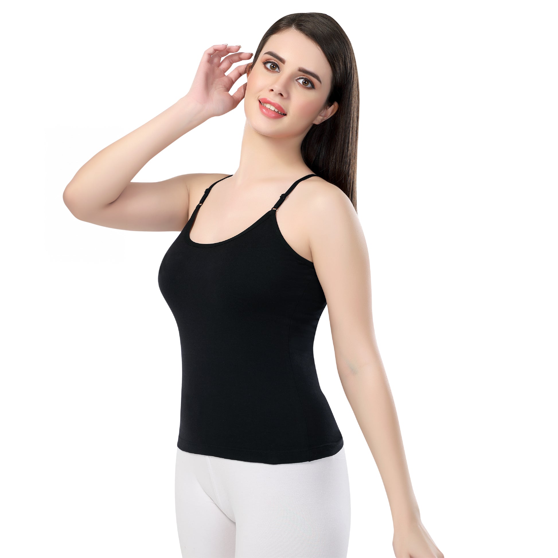 Introducing our sleek black slip, adorned with delicate thin straps and expertly crafted from 100% cotton fabric. Designed for both comfort and style, this slip offers a seamless silhouette and a soft, breathable feel against your skin. Its versatile black hue makes it a perfect foundation for any outfit, while its lightweight design ensures all-day comfort. Elevate your wardrobe with this essential piece that effortlessly combines sophistication with everyday ease.